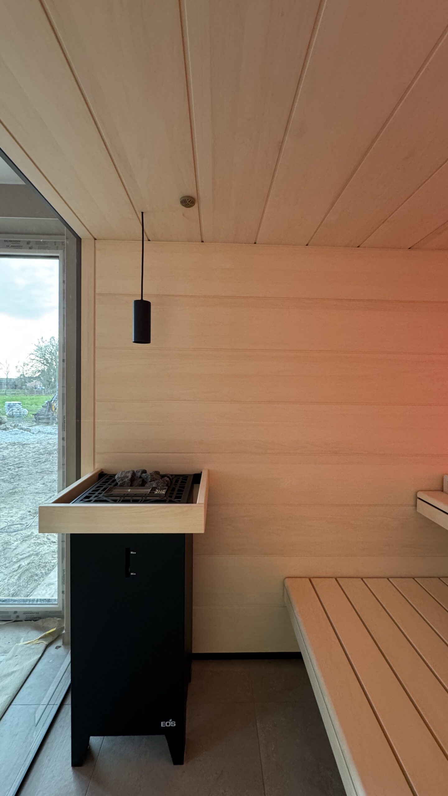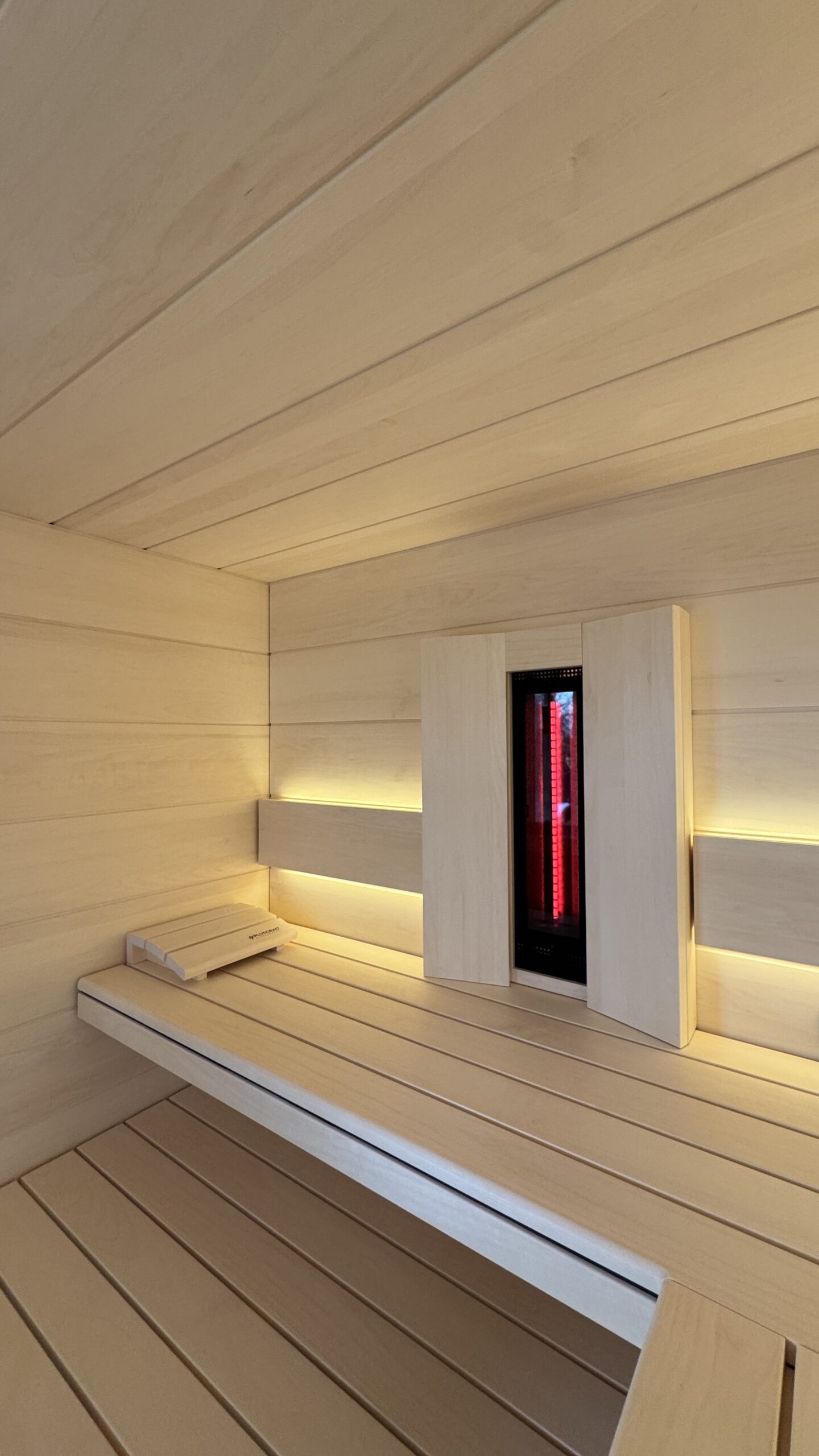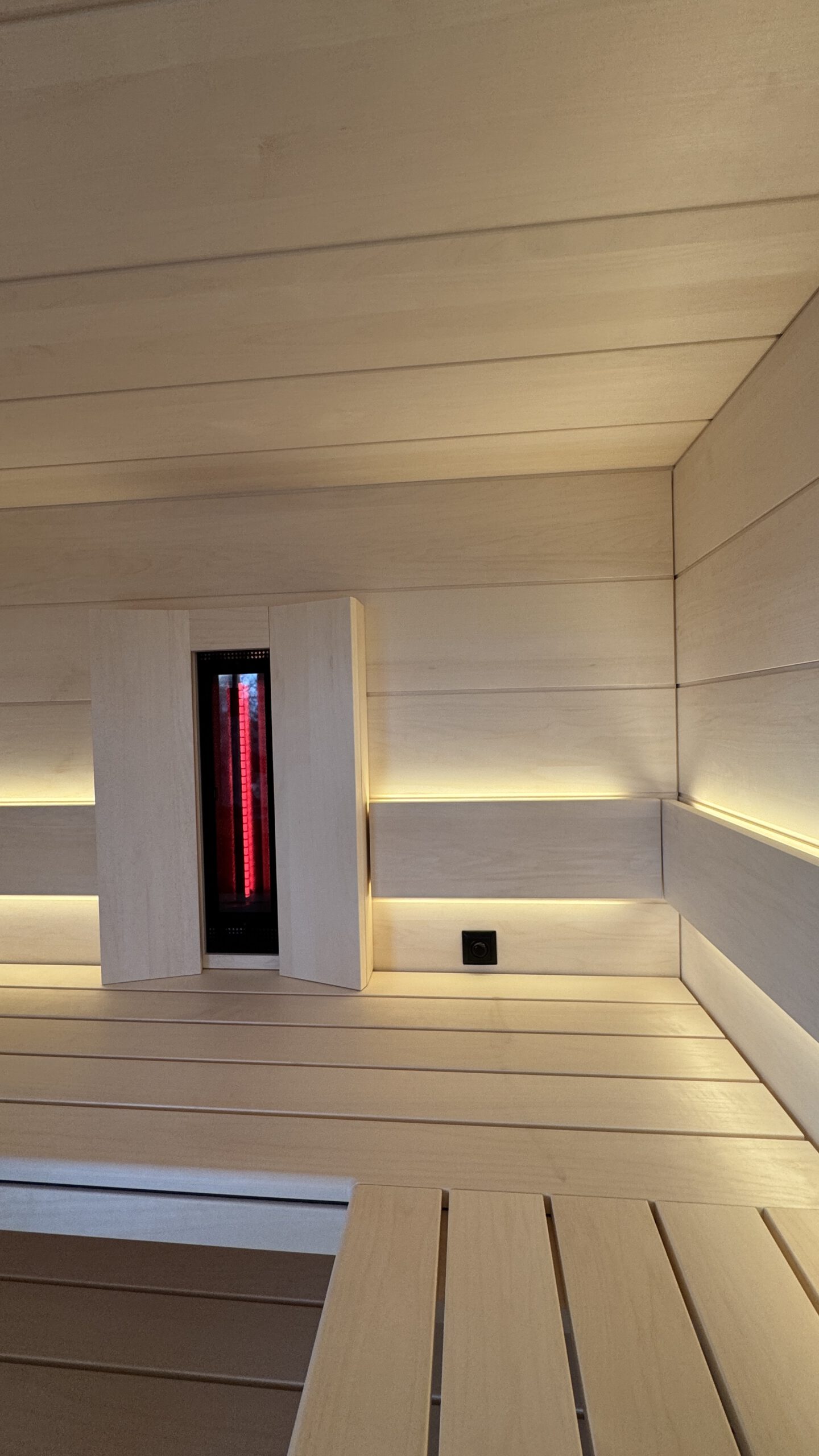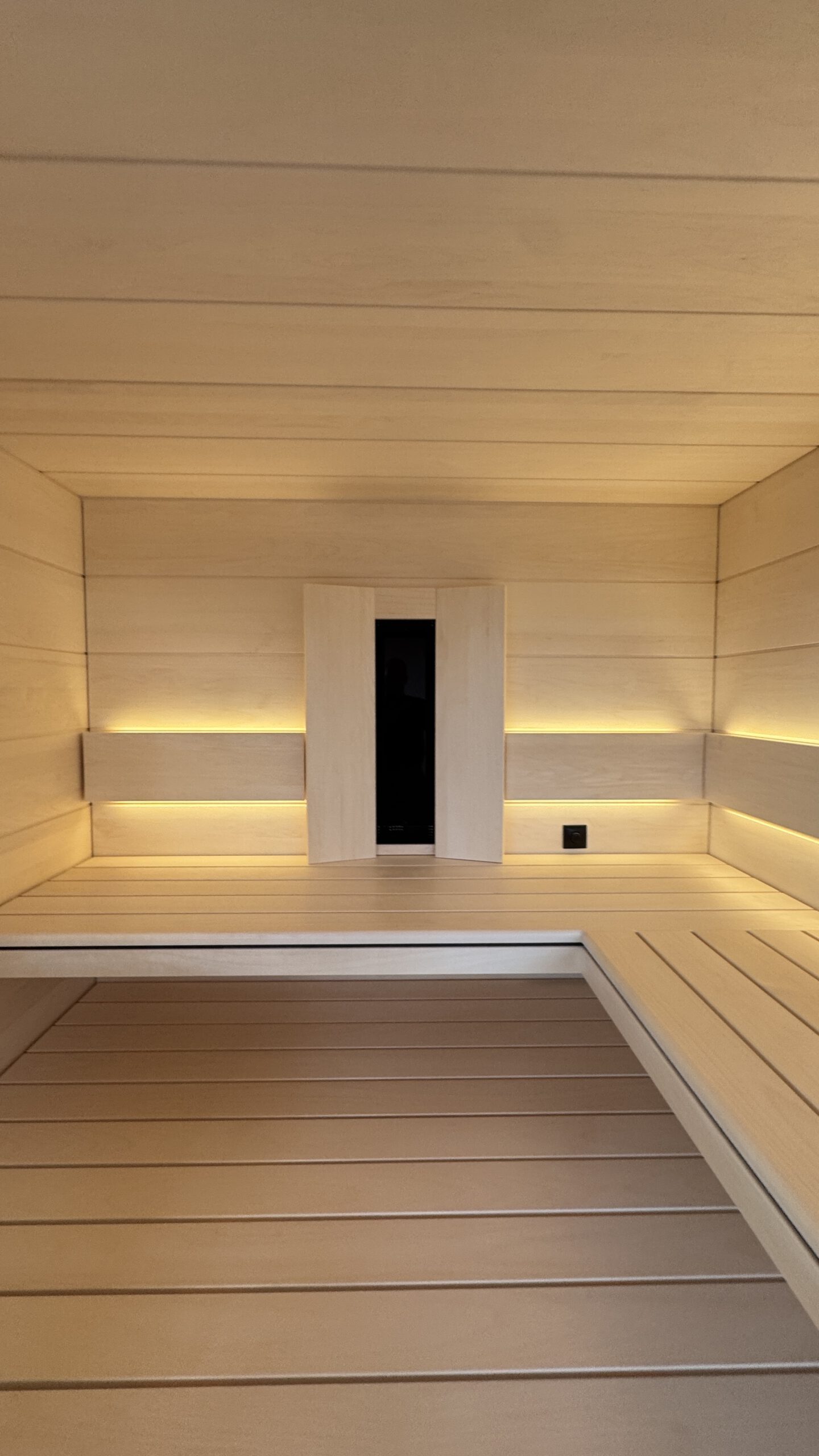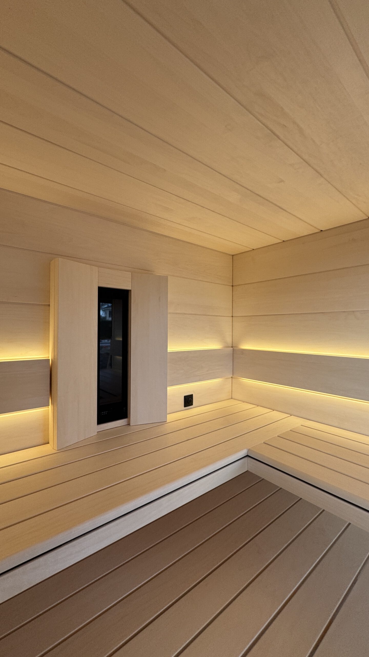 Die Sauna wurde vollständig nach Maß gefertigt und fügt sich ruhig und selbstverständlich in den Raum ein. Keine gestalterischen Brüche, keine Materialwechsel – alles ist aufeinander abgestimmt.